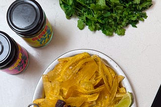 Charred Jerk Oyster Mushroom Skewers with Crispy Green Plantain Chips